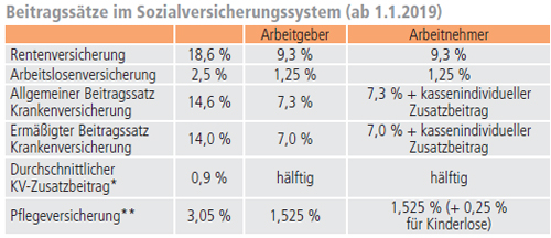 Beitragssätze im Sozialversicherungssystem (ab 1.1.2019)